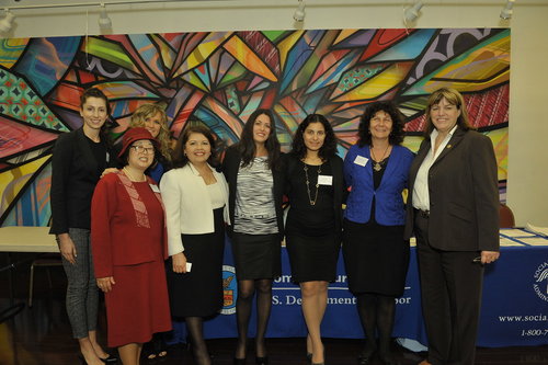 Guadalupe Gómez-Maganda, Head of Gender Equity Unit in the Mexican Ministry of Foreign Affairs; Roberta Steele, U.S. Equal Employment Opportunity Commission’s Regional Attorney, San Francisco District Office; Nancy Kirshner-Rodriguez, Executive Director, CA Commission on the Status of Women; Andrea Shorter, President, San Francisco Commission on the Status of Women; Fabiola Kramsky, Founder & CEO of Tuiris, Inc.; Breanna Zwart, Google Access Strategy Team and Commissioner, SF Commission on the Status of Women.