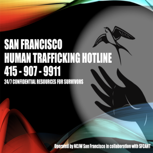 More detailed information about the hotline and our partners is available at the NCJWSF-hosted website of the San Francisco Collaborative Against Human Trafficking. Please click below to view this information.