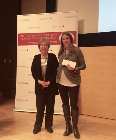 On February 13, 2017, at the closing event of the SFCAHT’s 2017 Awareness Campaign in the San Francisco Main Public Library, Koret Auditorium, we presented two awards of the 2017 “The Lillian Foreman Memorial Scholarship for Youth at Risk to be Exploited” to two youth, clients of Love Never Fails. The scholarship awards were presented by the NCJW San Francisco Policy Chair, Robin Brasso.