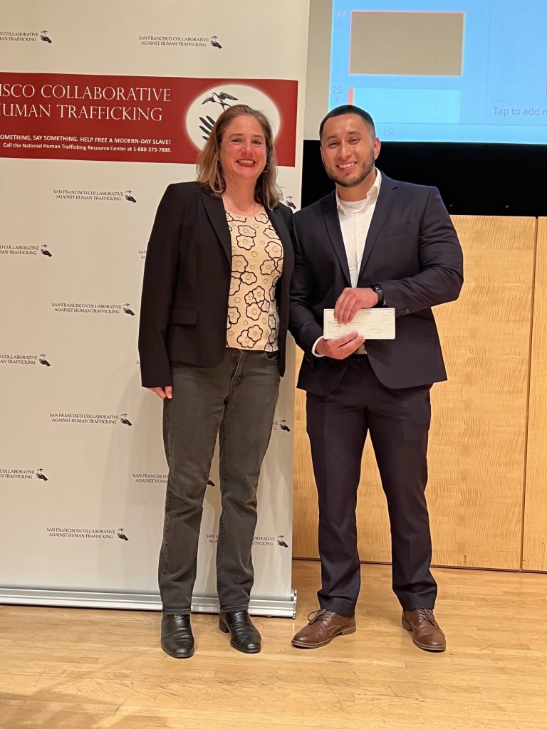 On February 29, 2020, at the closing event of the SFCAHT’s 2020 Awareness Campaign in the San Francisco War Memorial Veterans Building we presented awards of the annual “Lillian Foreman Memorial Scholarship for Youth at Risk to be Exploited” to two youth at risk of violence and exploitation, clients of the Justice At Last. The scholarship awards were presented by NCJW President and Scholarships Committee Co-Chair, Linda Kurtz, to Justice At Last’s Founder, Executive Director and Principal Attorney, Rose Mukhar.