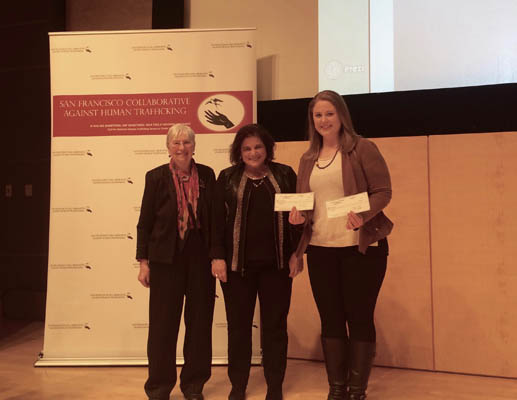 On February 10, 2016, at the closing event of the SFCAHT’s 2016 Awareness Campaign in the San Francisco Main Public Library, Koret Auditorium, we presented two awards of the 2016 “Nancy Surkin Memorial Scholarship for Survivors of Human Trafficking” to two youth survivors of sex trafficking, clients of MISSSEY (Motivating Inspiring Supporting & Serving Sexually Exploited Youth). The scholarship awards were presented by NCJW San Francisco member and Nancy Surkin’s daughter, Debra Surkin, to MISSSEY’s Board Member, Rose Mukhar.